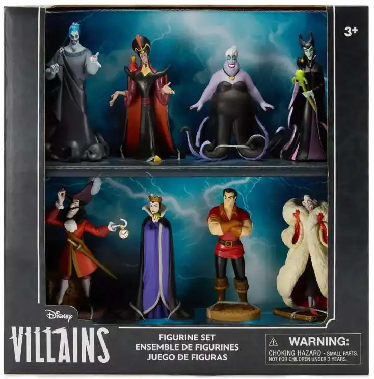 - Set of eight fully sculpted figures: Evil Queen, Captain Hook, Maleficent (with Raven), Cruella De Vil, Ursula, Gaston, Jafar (with Iago), Hades.