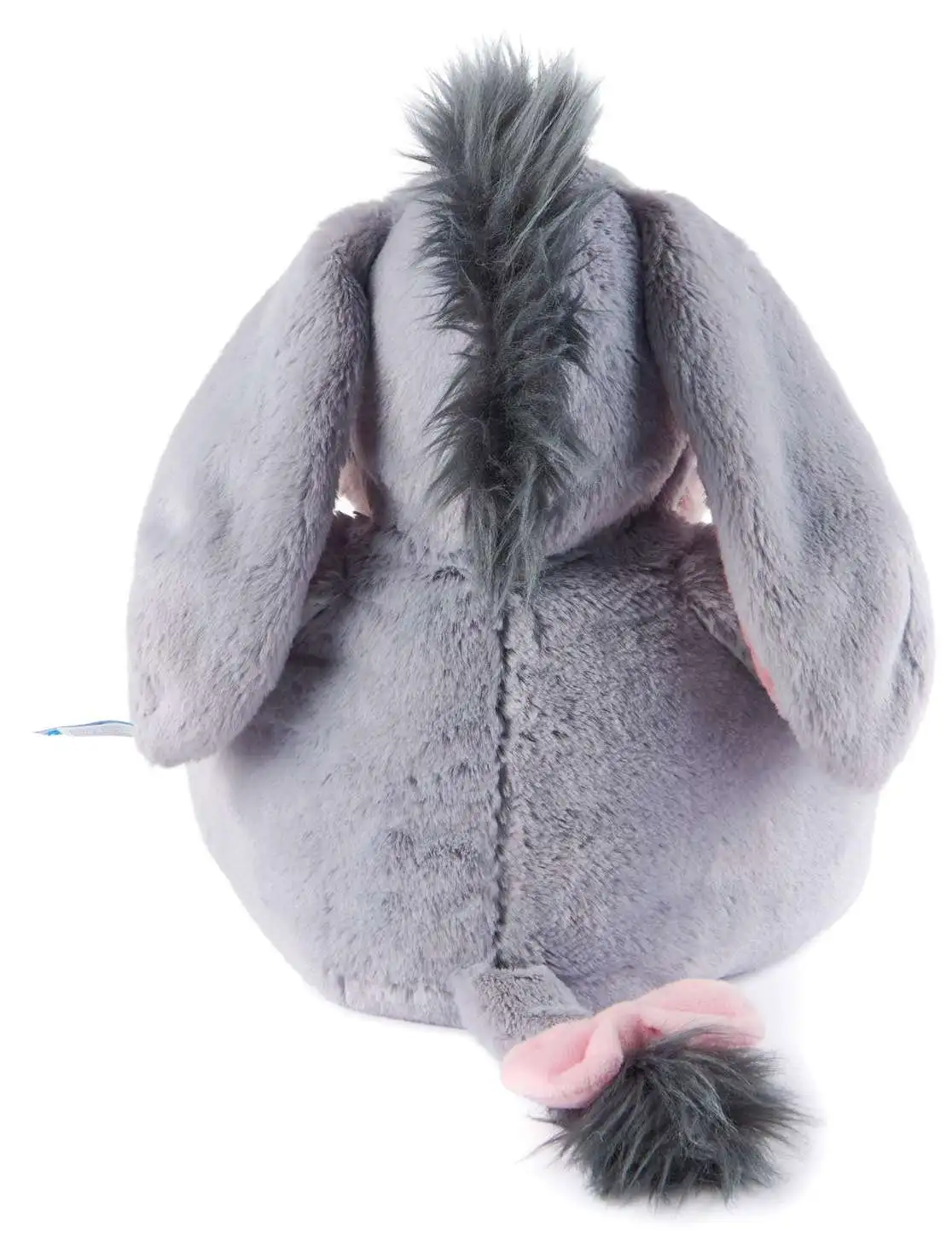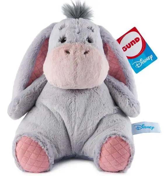 - MODERN WINNIE THE POOH PLUSH: This understuffed, huggably floppy Eeyore stuffed animal features soft gray plush with pink embroidered accents and a pink bow on his tail. Eeyore also has soft quilted cotton jersey textures on his feet and ears.