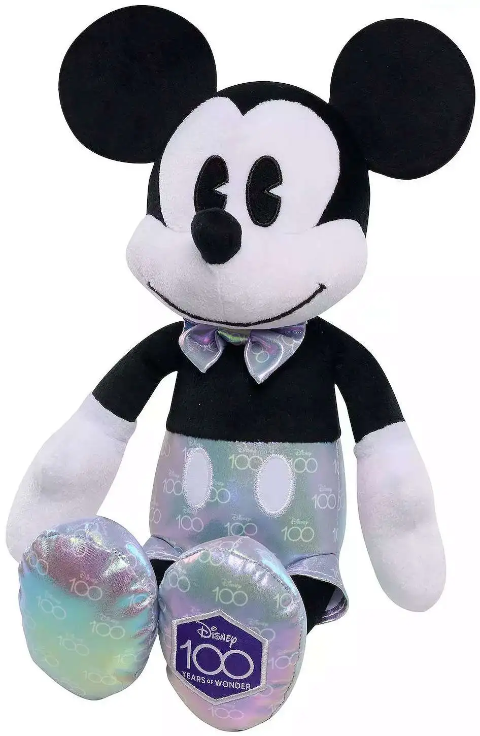 - For this exclusive edition, Mickey Mouse features beautifully embroidered details, and comes to impress in his platinum-hued bowtie, matching shorts, sparkly shoes, and exclusive Disney 100 Years of Wonder foot patch