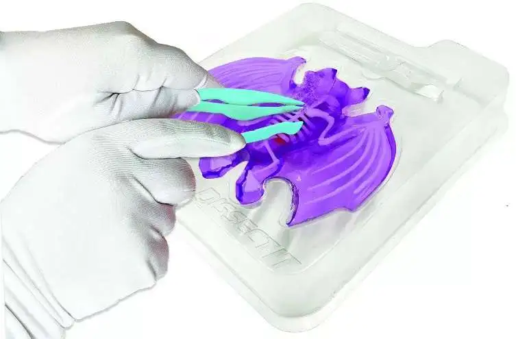 - Proprietary geletin material provides a safe dissecting experience without using a real Bat