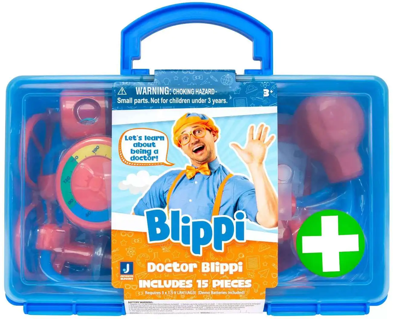 Doctor Blippi Exclusive Playset [Stethoscope, Glasses, Blood Pressure Arm Band, Toy Syringe, Thermometer, Doctor Bag, Bandages, Reflex Hammer Shoe & Clipboard with 5 Activity Sheets]