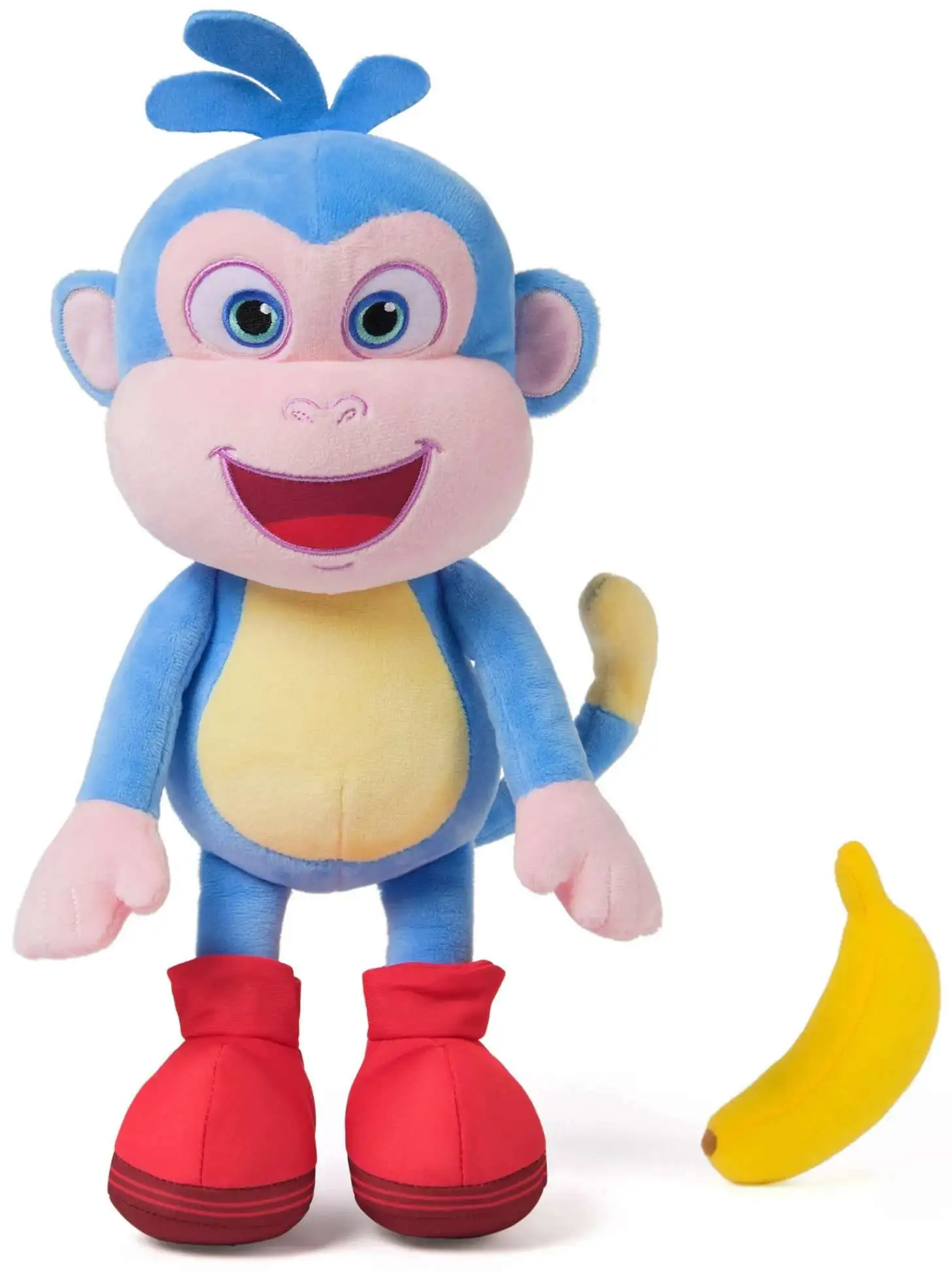 - BOOTS MONKEY STUFFED ANIMAL: Snuggle with Boots! This sweet stuffed animal features Boots' velvety-soft blue-and-yellow fur, bright smile, and iconic bright red boots, as seen in the cartoon.