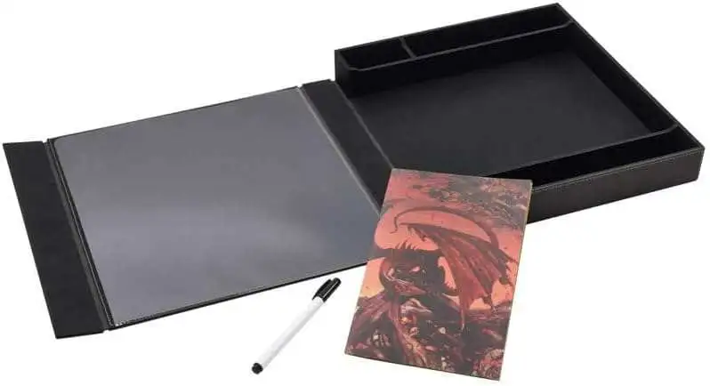 - Room for miniatures, pens and dice