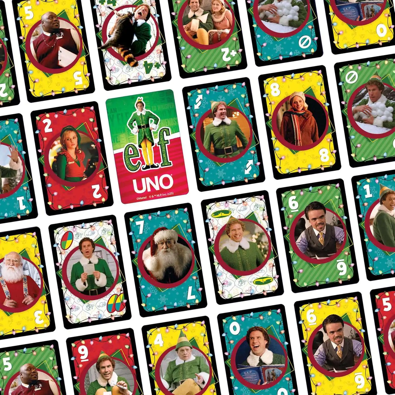 - The UNO game players love features iconic images from the world of the movie Elf to get card lovers in the spirit!
