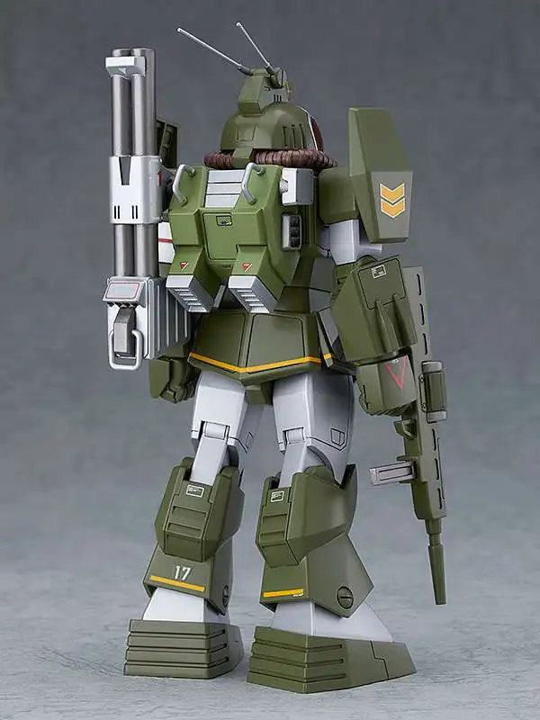 - Features a detailed Soltic H8 Roundfacer model with reinforced pack mounted type, inspired by Kunio Okawara's illustrations, including a double-barreled mag launcher.