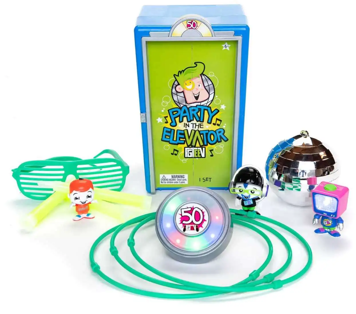 With all-new groovy figures, light-up party favors, and a musical button that plays the popular Party in the Elevator song for a sing along, the fun goes on and on!