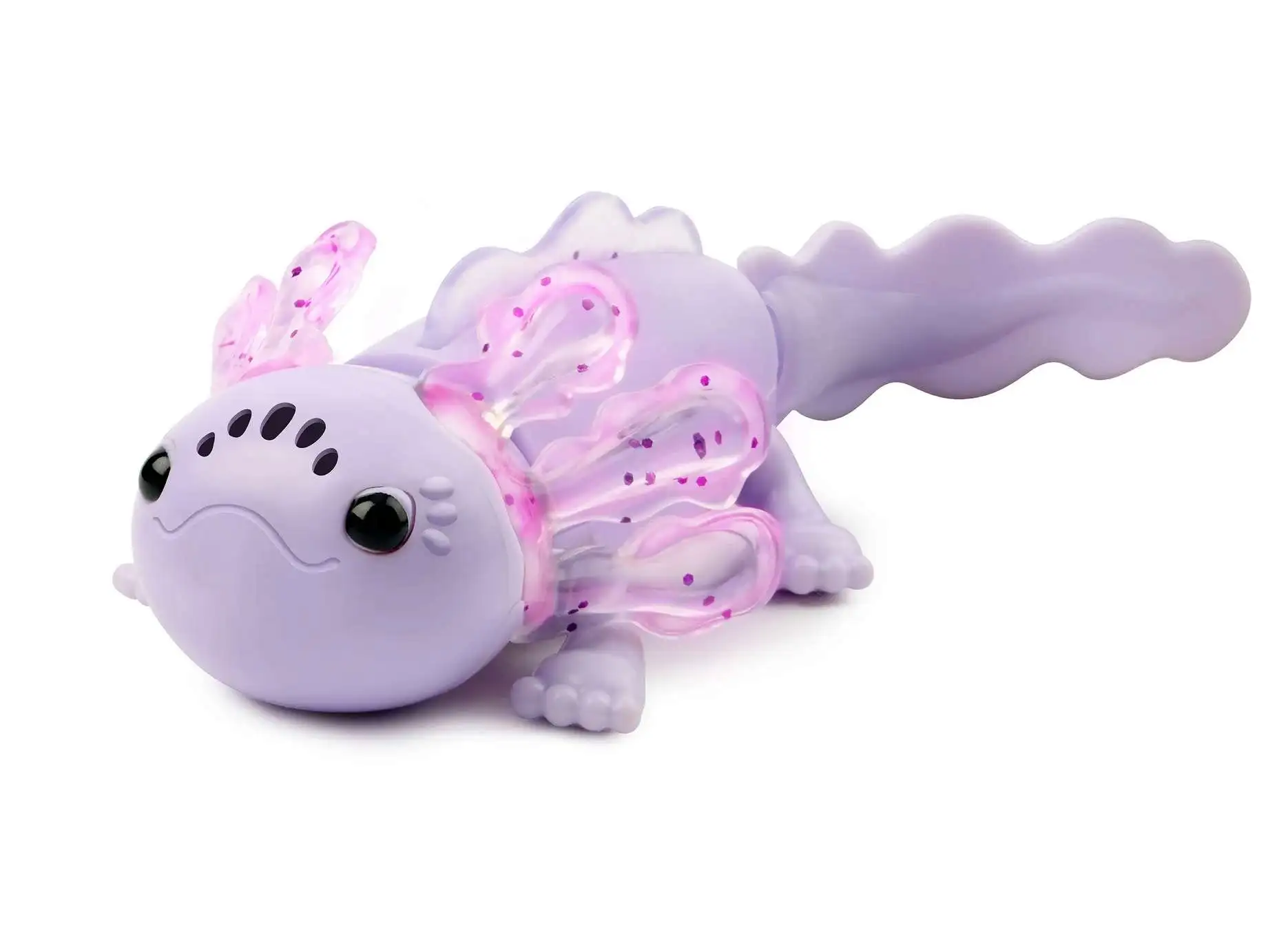 - Baby Axolotl features magical, rainbow lights and sounds both in and out of the water! Out of the water, it really knows it's you when its in your hand. You can even pet its head for different sounds and reactions.