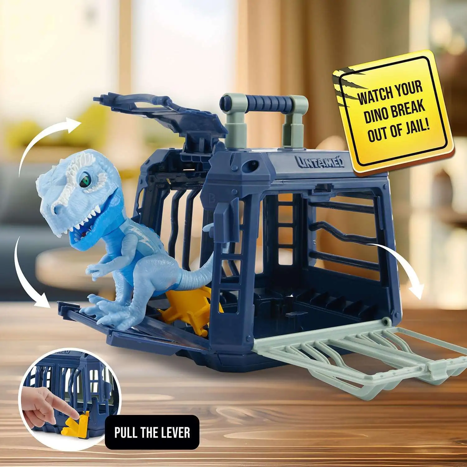 - DINOS ARE STAGING A JAILBREAK! Enjoy even more ferocious adventures with Untamed Jailbreak Playset. Place your Roaring Dinos character inside the cage, then pull the lever to watch your dino breakout by busting open the door. Rebuild the cage and play again and again!