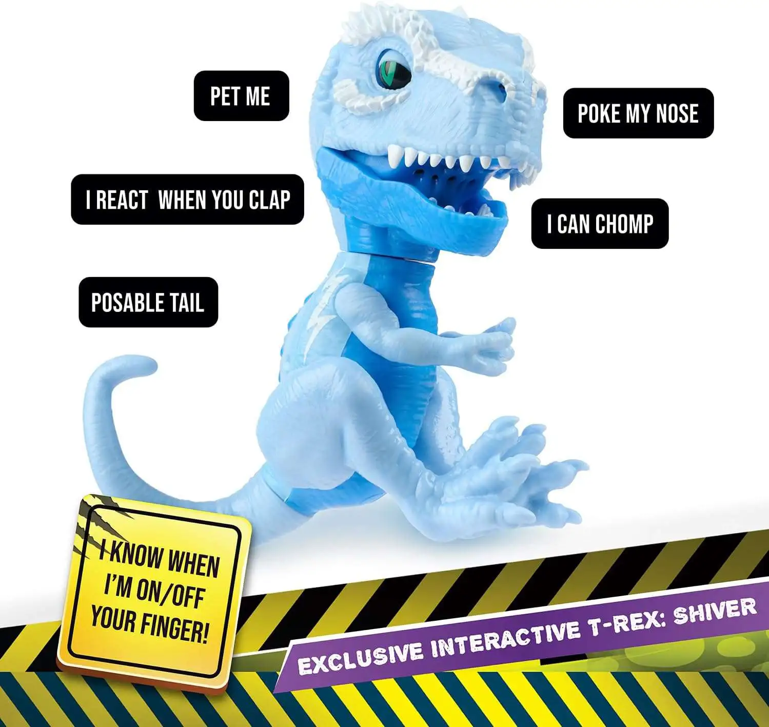 - EXCLUSIVE INTERACTIVE T-REX -SHIVER. Get close if you DARE! This fierce fingertip Tyrannosaurus Rex - king of all the dinos - is totally interactive. Shiver is a ferocious T-Rex with no chill!