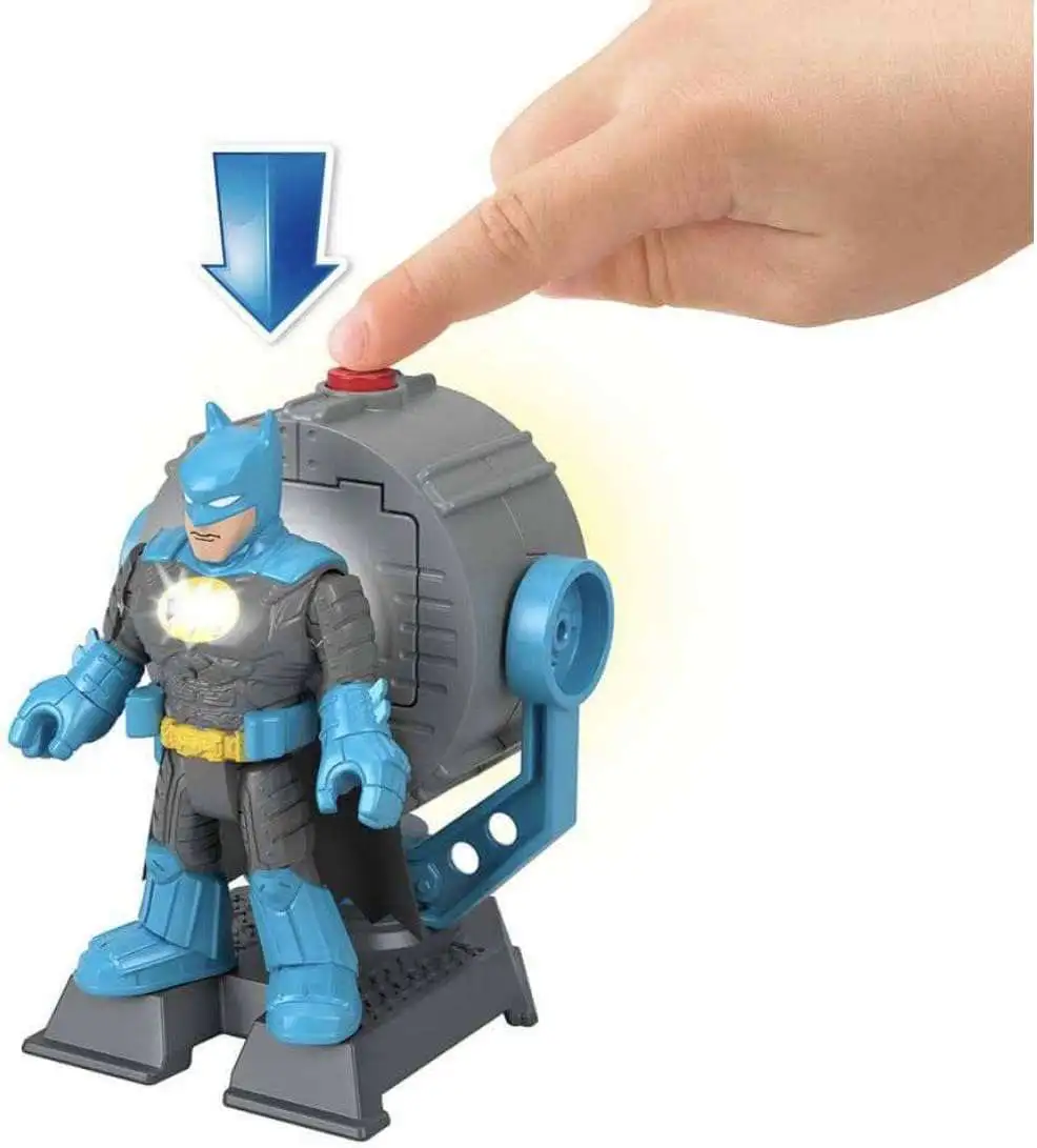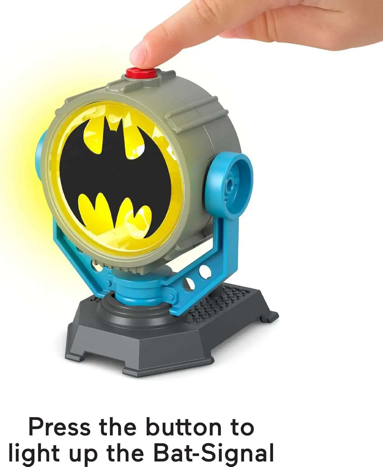 - Attach a figure to the Bat-Signal and push the button to see the figure's chest light up
