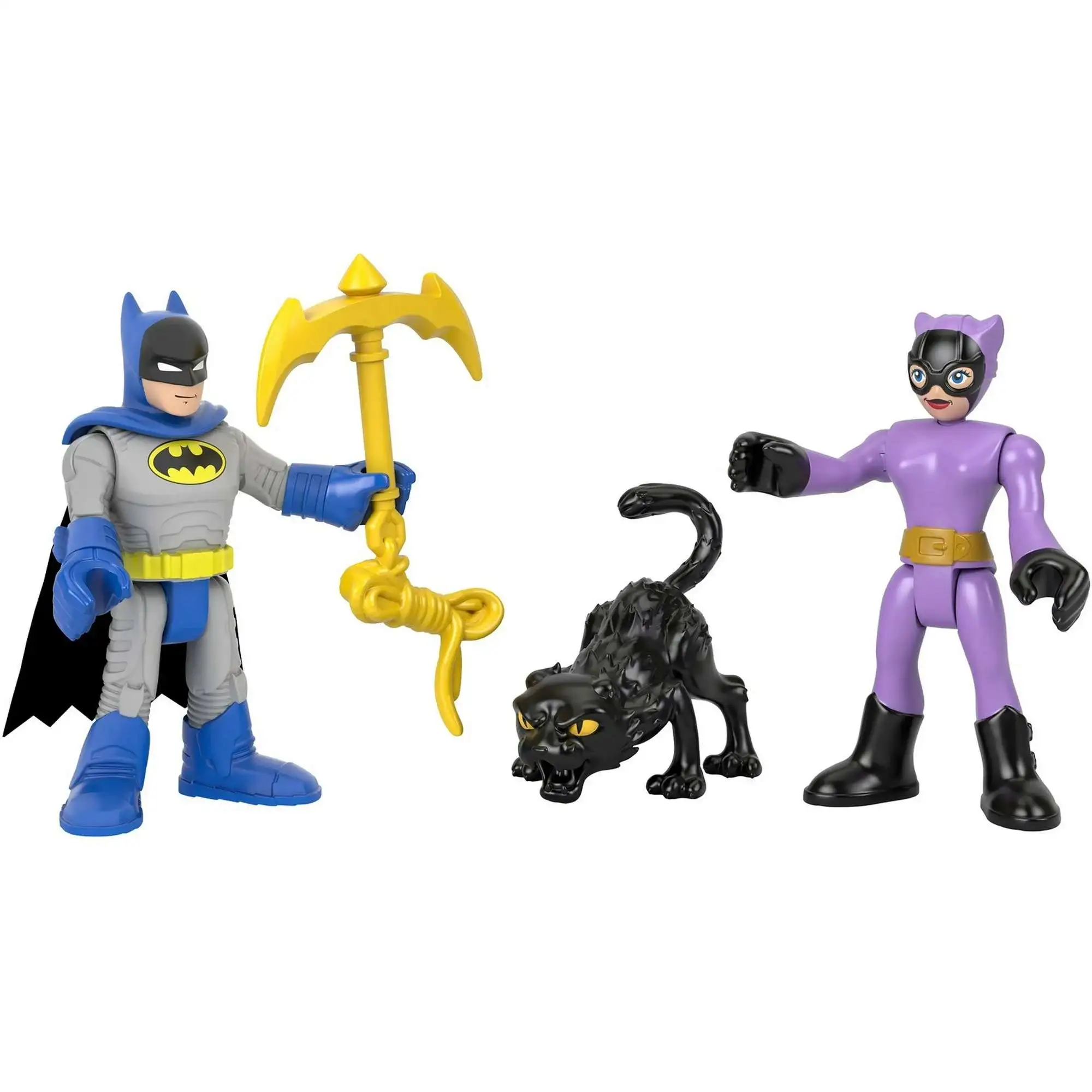 - Set includes Batman and Catwoman figures, each with their own weapon accessory