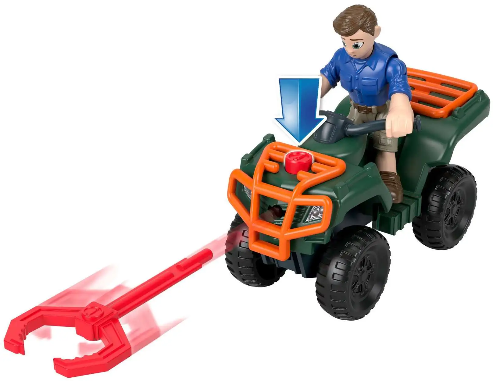 - Press the Power Pad on the roll-along ATV to launch the grabber tool and "capture" loose dinosaurs