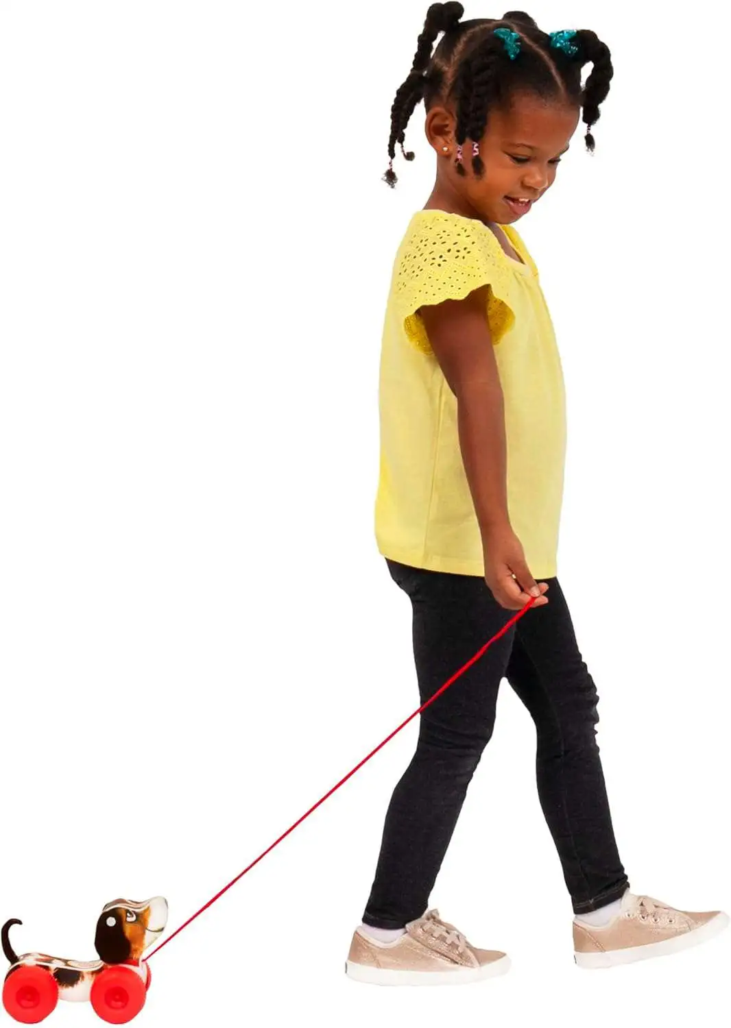 - An endearing classic Encourages gross motor skills, cause-effect learning, imaginative play. Makes "yip-yip" sound as it rolls.