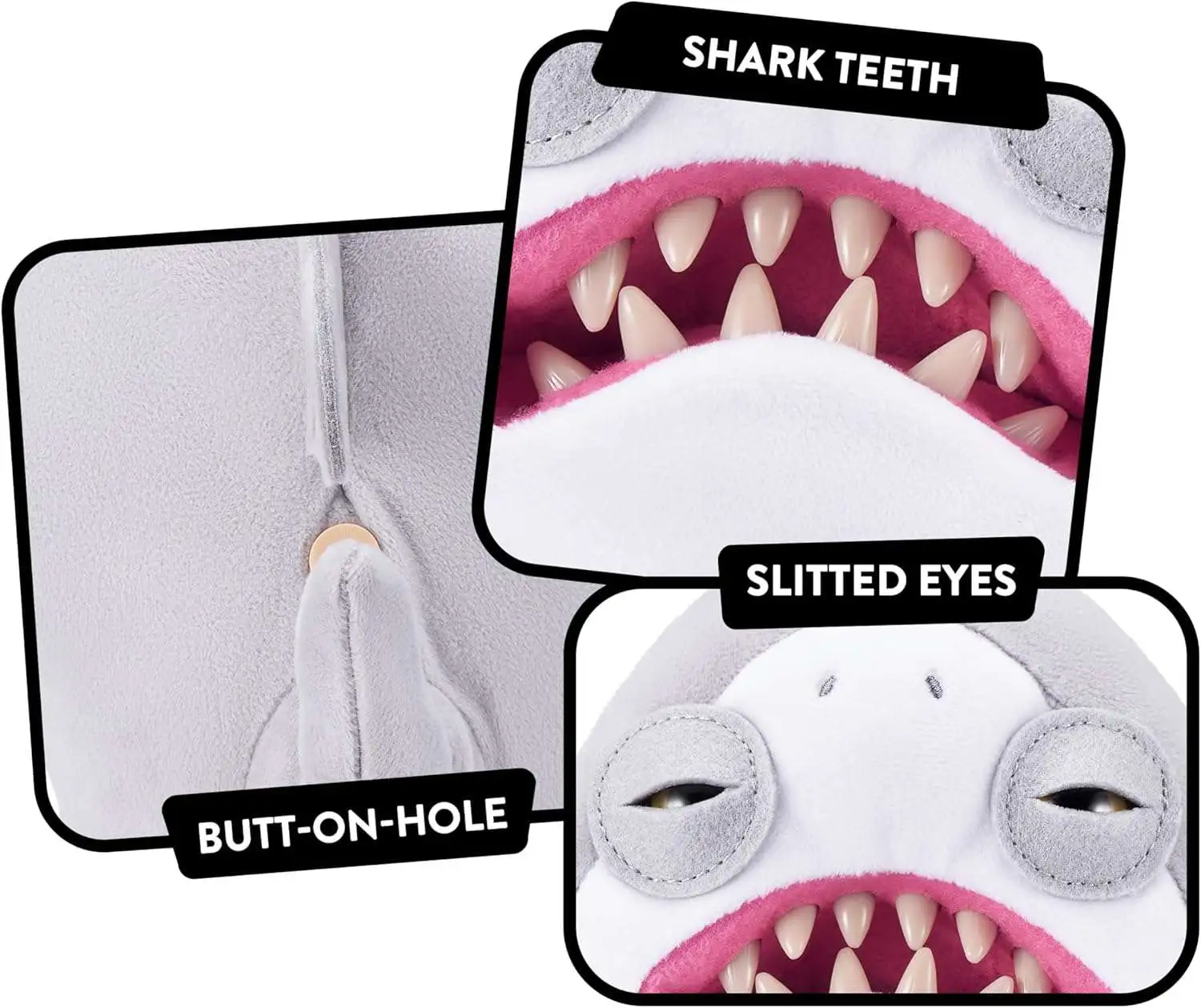 - Quirky 9" plush of Jaws, blending creepy and humorous elements with human-like teeth and wild eyes.