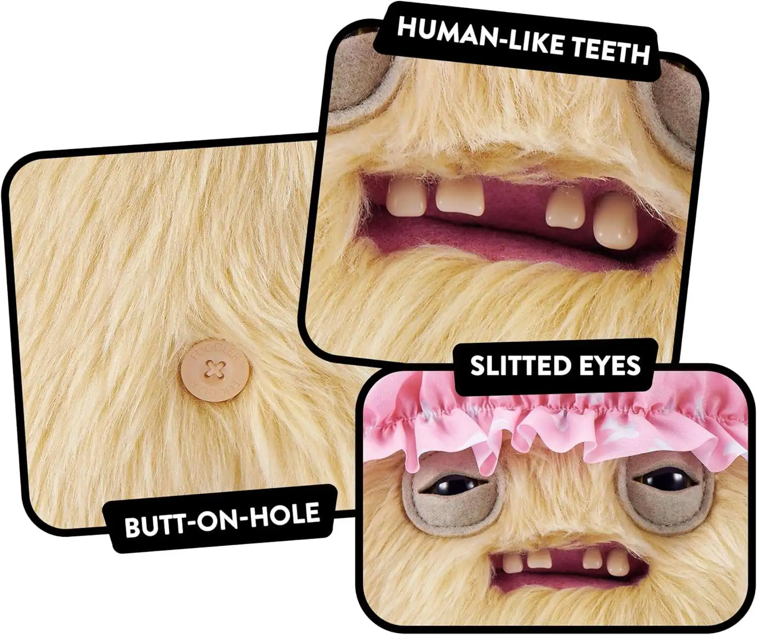 - HUMAN-LIKE TEETH: Each Fuggler features a set of disturbingly human-like teeth. The signature Fuggler grin is creepy, funny, and unforgettable.