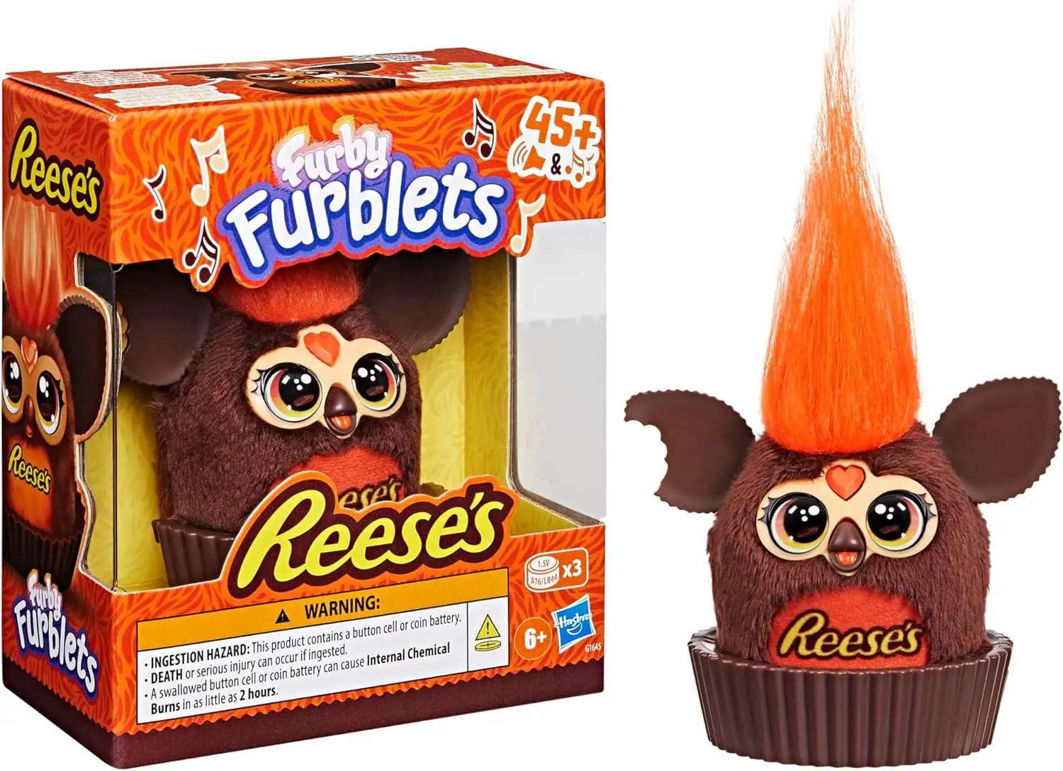 - TREAT YO'SELF TO A REESE'S FURBLETS FRIEND: This mini Furby friend loves REESE'S cups so much, they wanted to dress up like one! As an extra treat, 3 A76/LR44 batteries are included