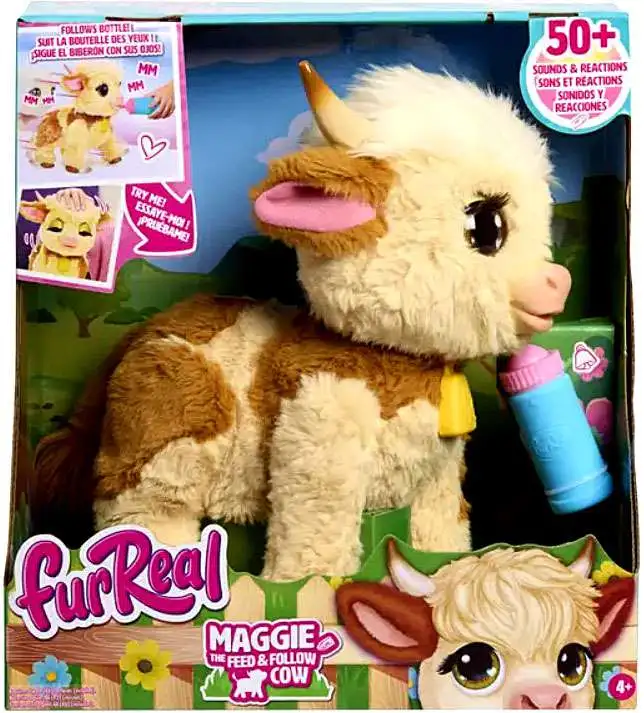 FurReal Friends Maggie 11-Inch Interactive Plush Toy [Feed & Follow Cow, 50+ Sounds & Reactions]