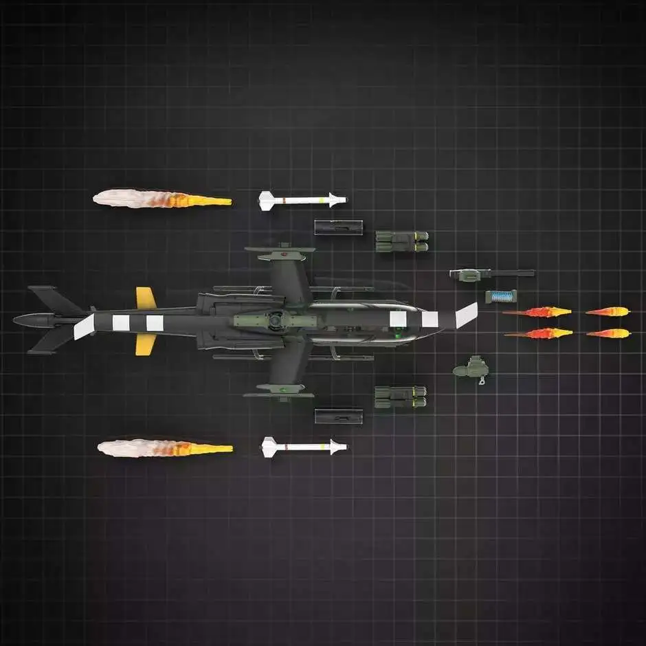 This two-seat Assault Copter oering represents the pinnacle of G.I. Joes anti-armor technology. Its a massive 34.09 inches/865.79 MM long from the tip of the front turret barrel to tail, 11.33 inches/287.92 MM tall from skids to rotor, and 13.77 inches/349.76 MM wide wing tip to wing tip. Its certain to send a shiver down the slithery spine of every Cobra within sight.