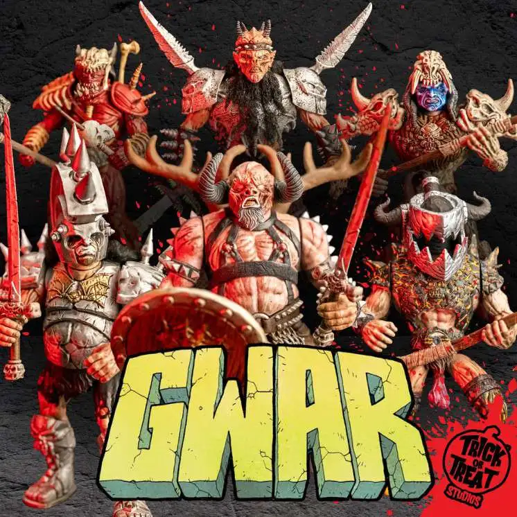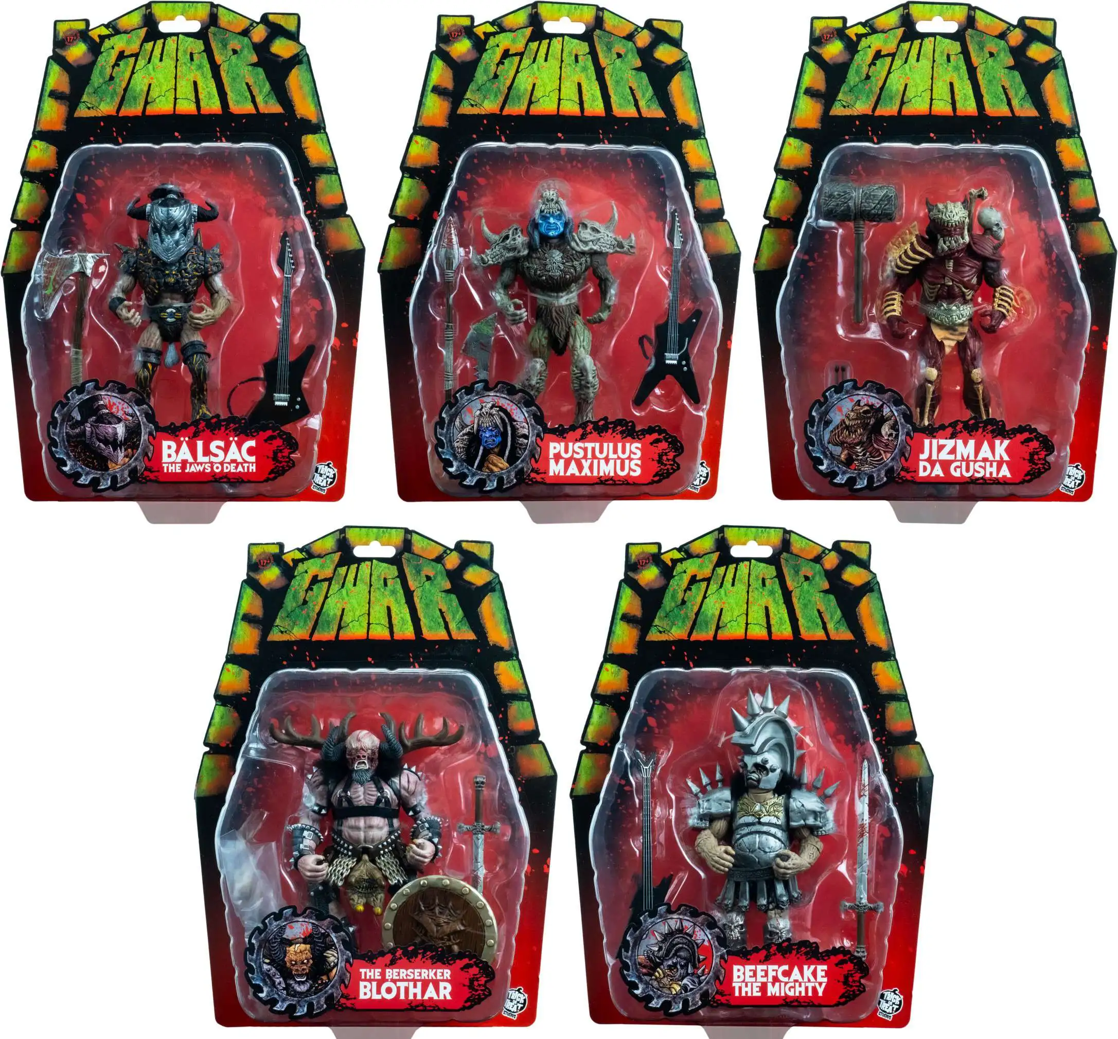 - Includes 5 detailed action figures: Balsac, Beefcake, Blothar, Jimak, and Pustulus from GWAR's universe.