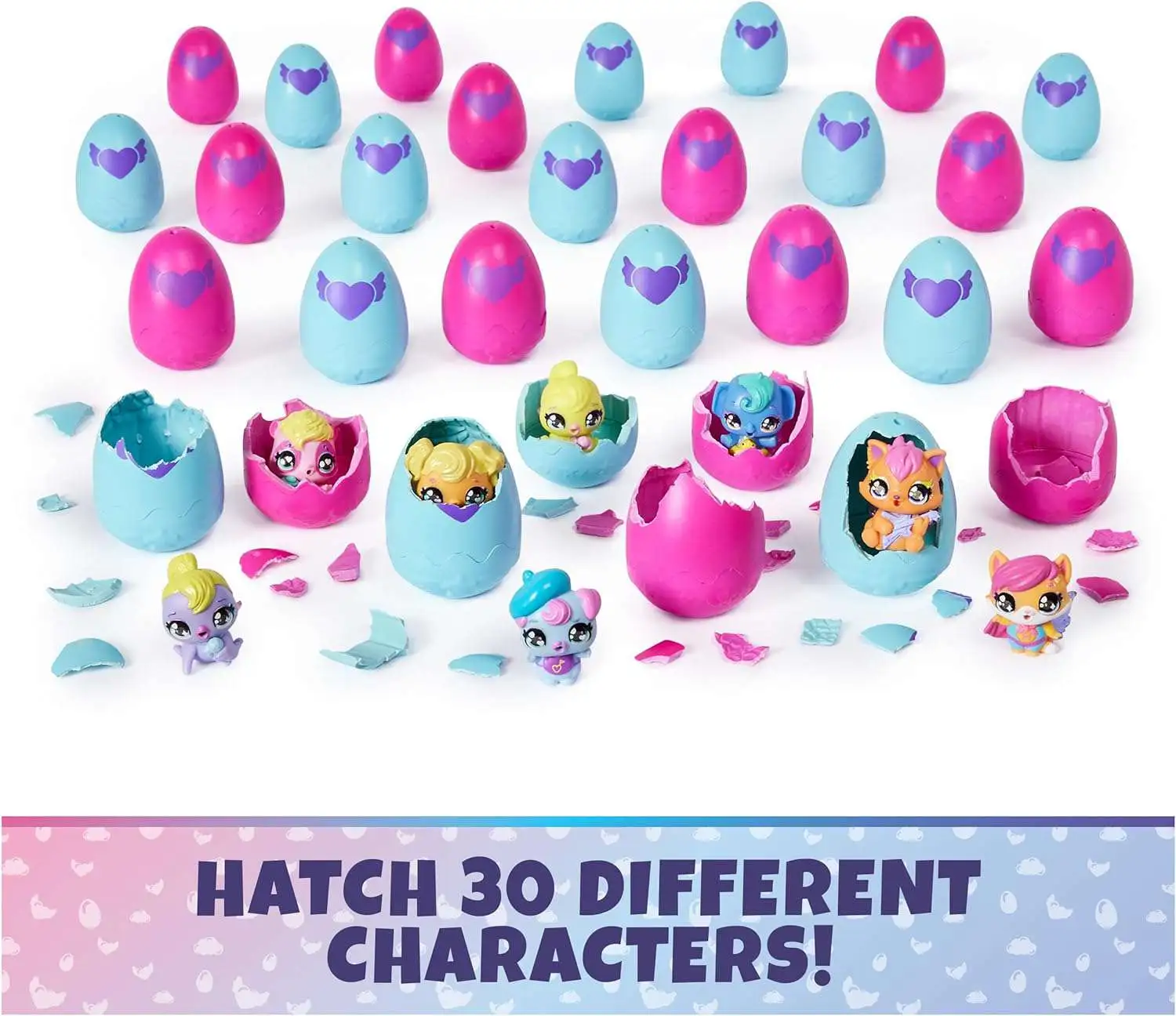 - 30 HATCHIMALS: Crack into each Hatchimals egg and discover adorable characters with playful poses, including a unicorn, puppy, cat, bunny, fox, monkey, and more mini figures! They're all so cute!