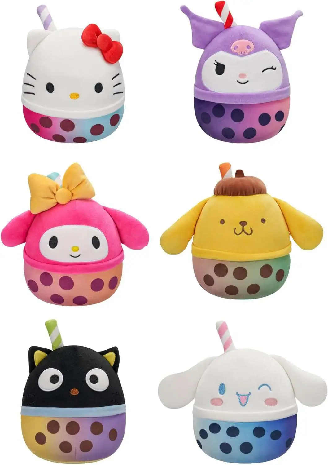 - Each 8in Squishmallows combines a Sanrio favorite-like Chococat-with the design and smell of a sweet boba flavor-like banana!