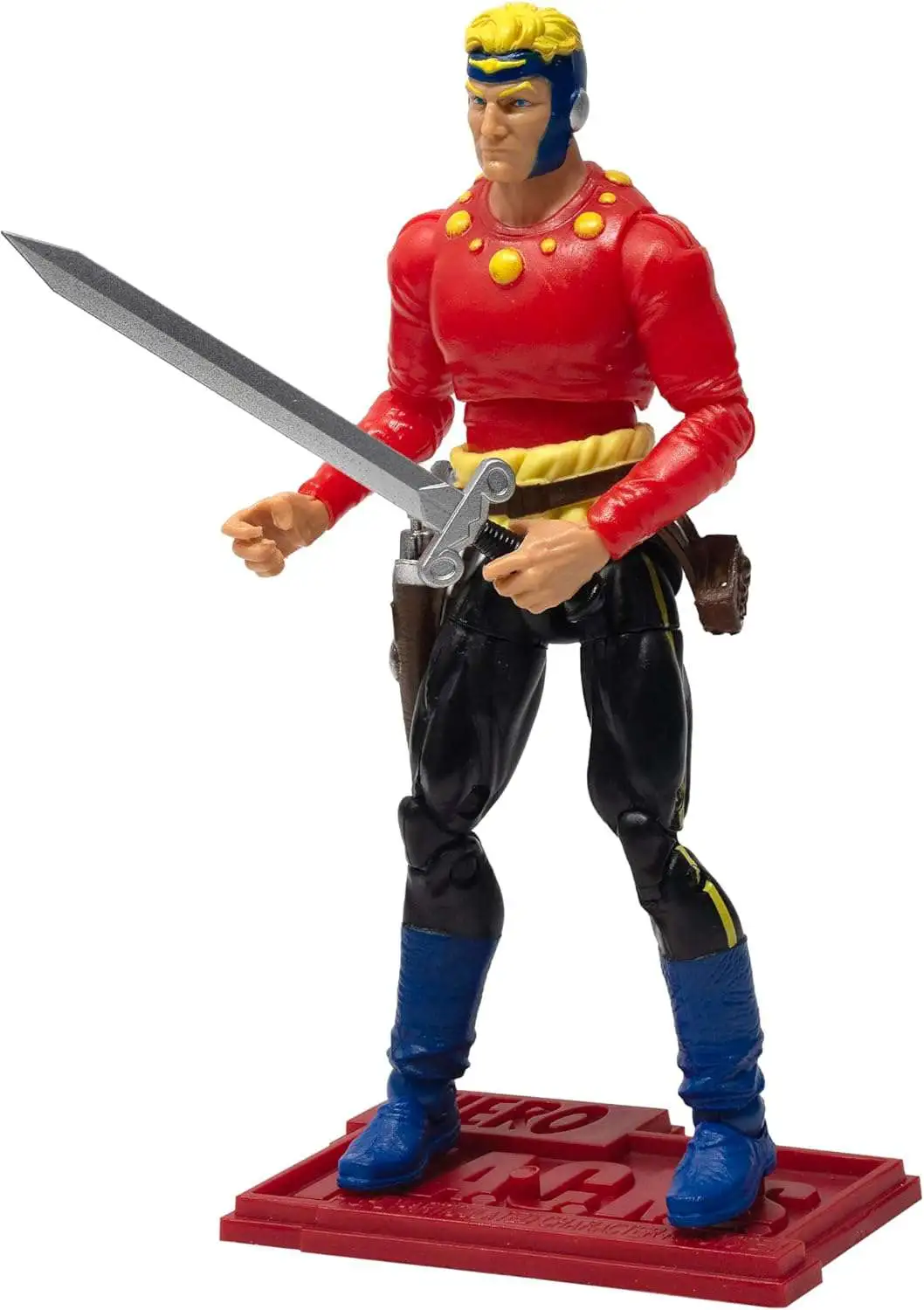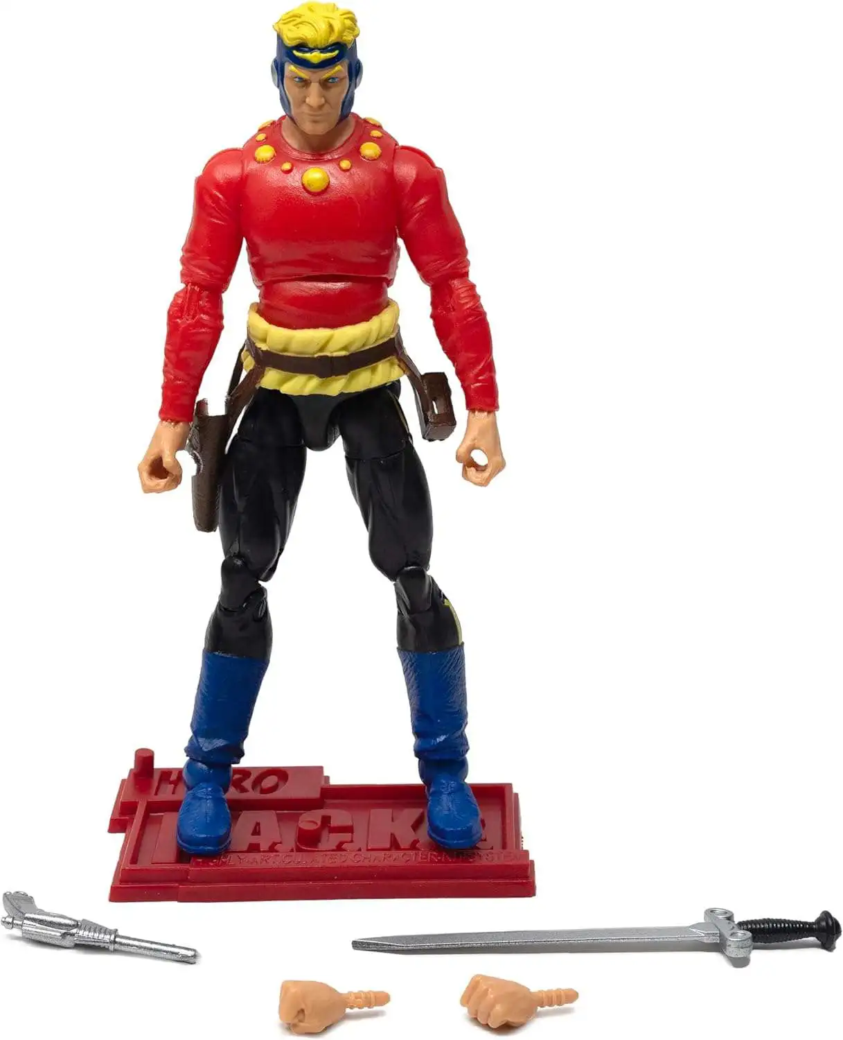 Complete Accessories: Flash Gordon comes equipped with all the essentials to battle Ming the Merciless, including laser pistols, a sword, a belt with holster and sheath, and a figure display stand to hold his action poses