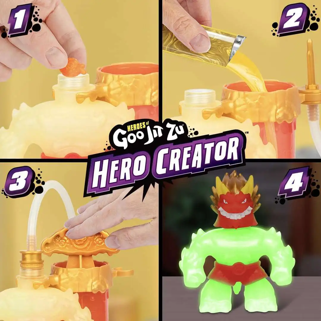 - Create Your Own Hero: For the first time, kids have the power to create their very own Heroes of Goo Jit Zu Blazagon figure, now with an electrifying twist: he glows in the dark!