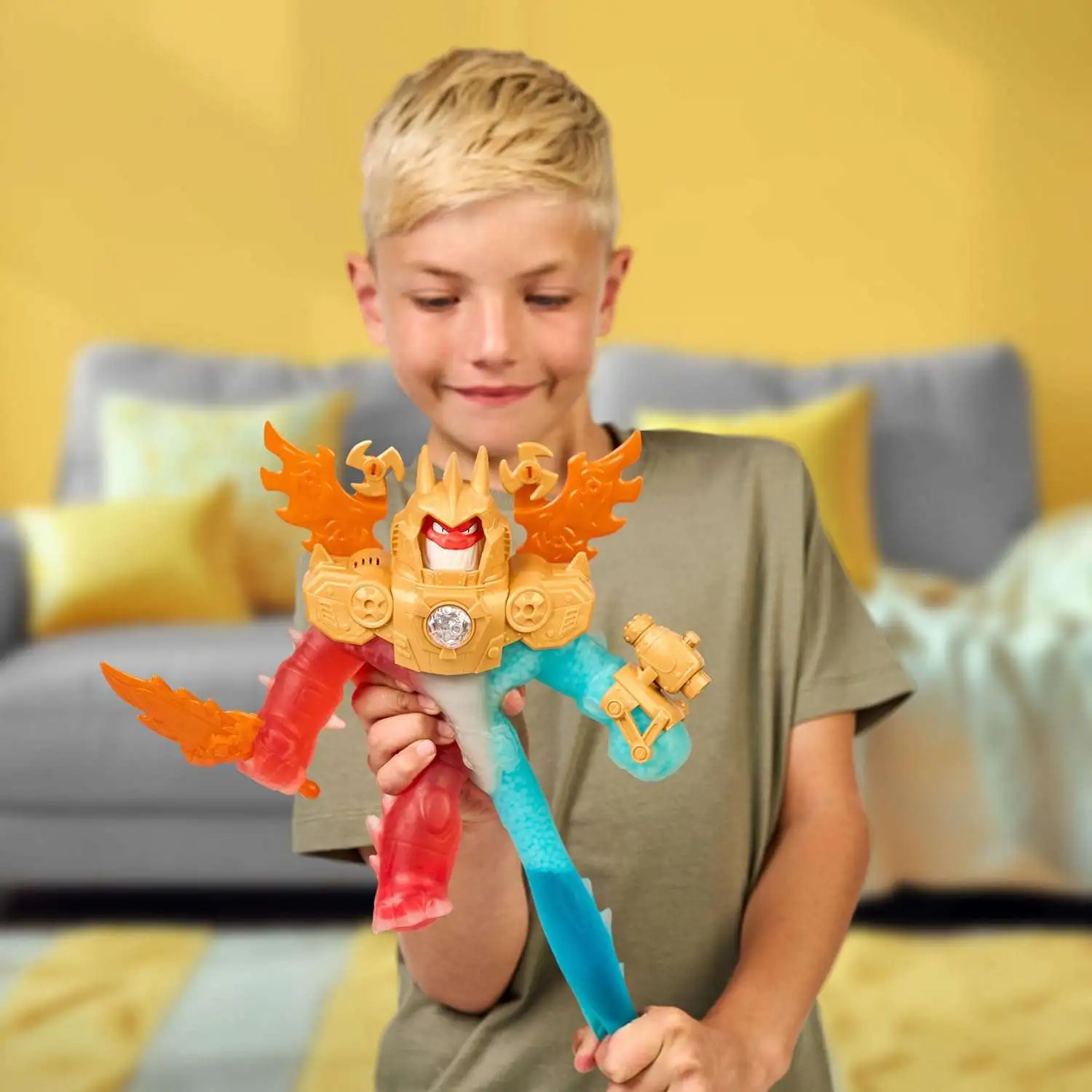 - Unique Fillings: As kids stretch, twist, and squish Goo Tron in battle, they'll reveal his three unique goo fillings.