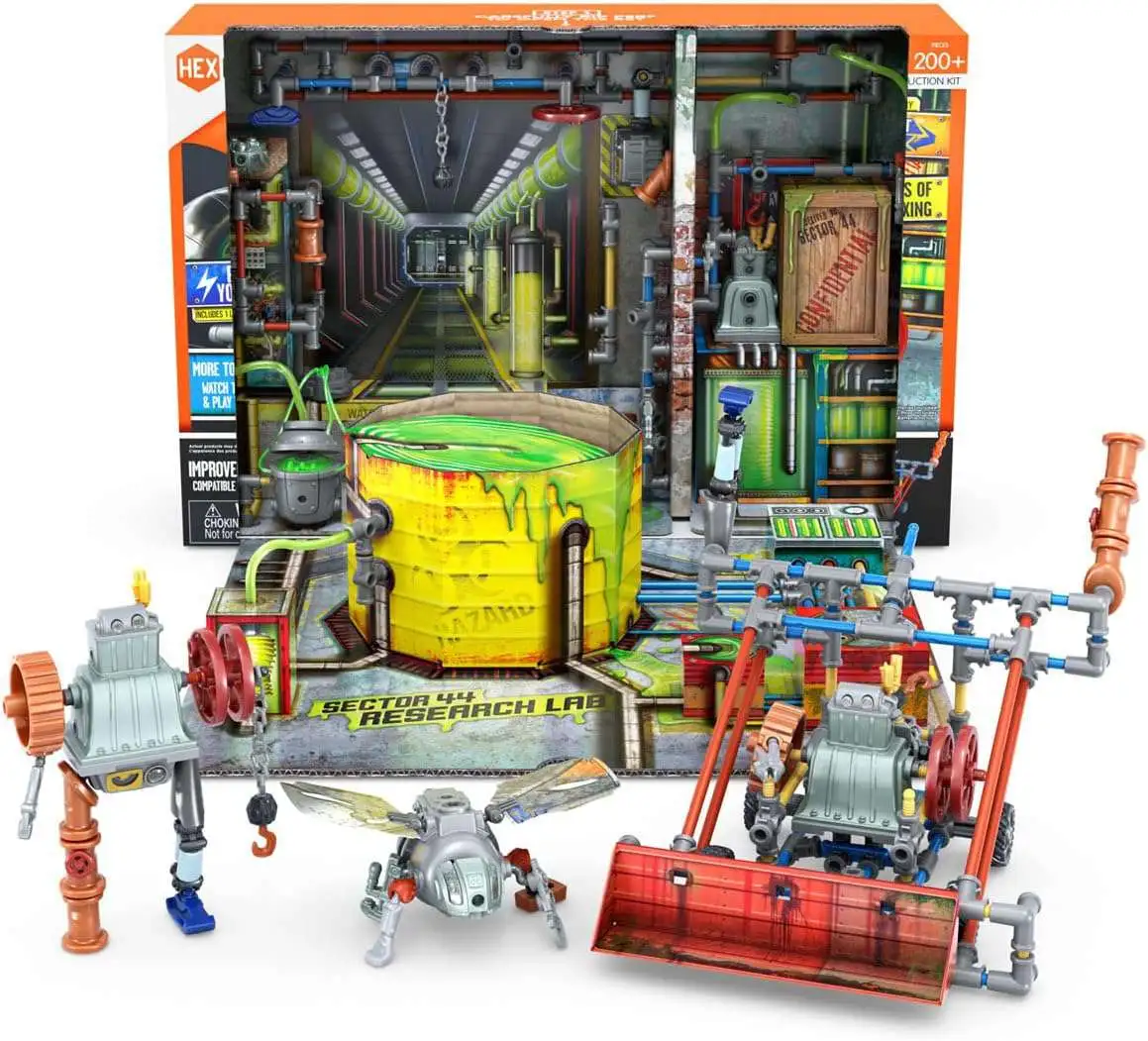 - HEXBUG JUNKBOTS Small Factory Habitat Power Sub station is compliant with CPSIA standards. Ages 5 years and up. This robotic toy set is battery powered. Batteries included are LR44 button cells. This blind box construction system is the first-ever habitat construction from JUNKBOTS and with an interlocking pipe-building system, you can pull pipes directly off the wall to deconstruct and reconstruct for alternate builds!
