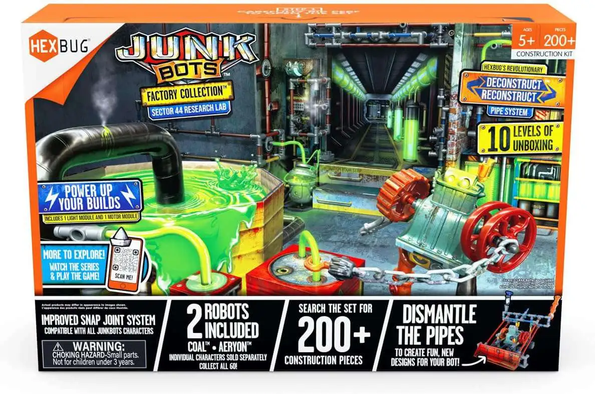 - The JUNKBOTS Small Factory Habitat - Power Sub Station playset is full of surprises! Unbox the power generation plant to find hidden parts, build all-new JUNKBOTS, then deconstruct and reconstruct! 2 collectible robot characters & habitat included. 200+ construction pieces. Construction system made up of character components + pipes & connectors is built into the collection. Deconstruct to construct characters & contraptions for bots to utilize. Surprise, blind box style packaging.