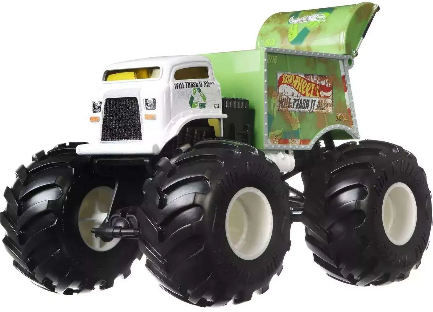 - Take crashing and smashing into overdrive with these oversized Hot Wheels Monster Trucks. Each truck is 1:24 scale and features the awesome details that bring Monster Truck characters to life.