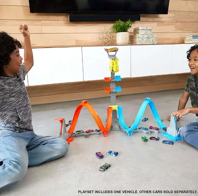 - This track set includes one 1:64 scale Hot Wheels car. Bring in an additional vehicle (sold separately) for head-to-head battles