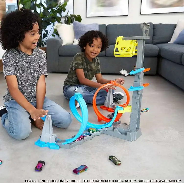 - Kids will love the stunting and racing involved in this thrilling track set, and the challenge of being the first to reach the cage, which can be adjusted for various levels of difficulty