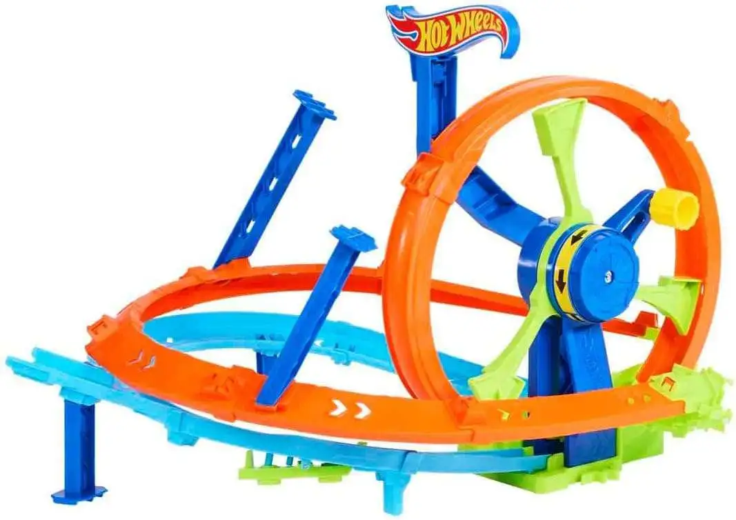 - The Hot Wheels Rapid Launch & Loop Playset features a cranked wheel that boosts cars through a loop, curves and a crash zone repeatedly