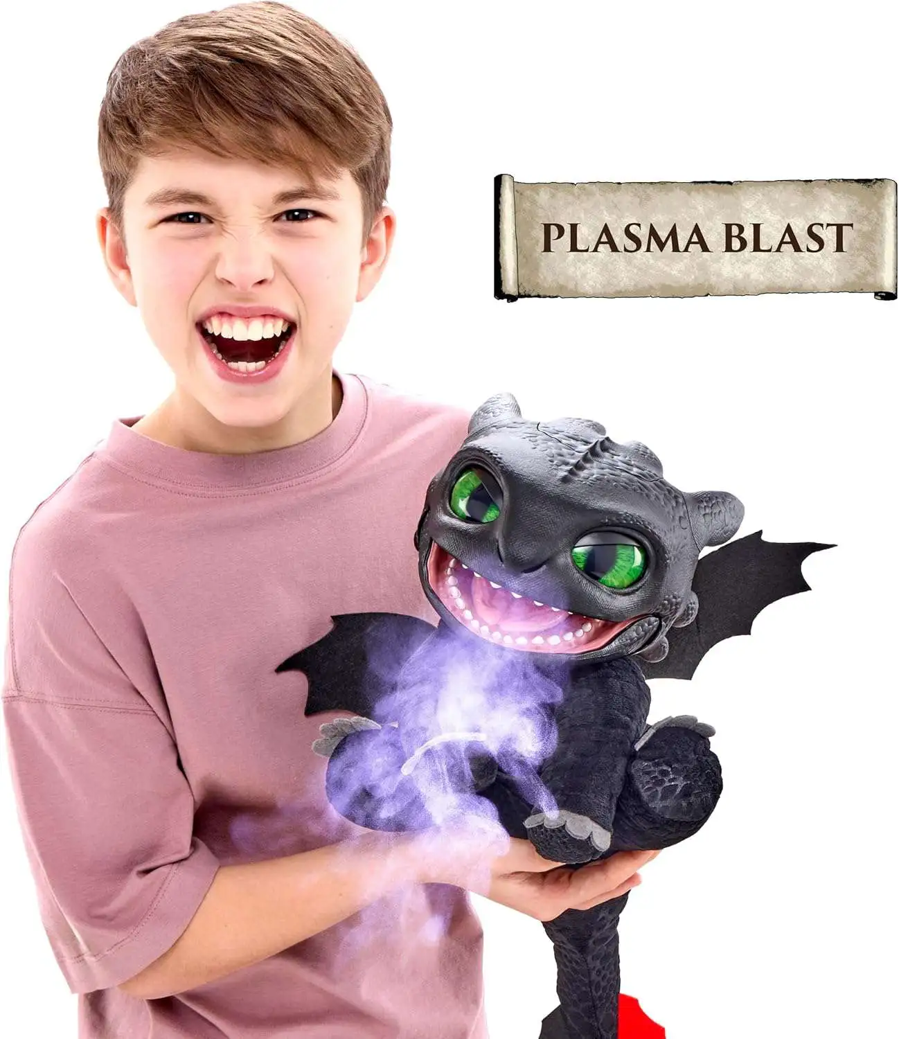 - 50+ ACTION & SOUND COMBINATIONS! When combining all these functions; Toothless snorts and growls, moves his mouth, turns his head, and breathes smoke out of his nose. Be WOW'd by his iconic purple plasma blast.