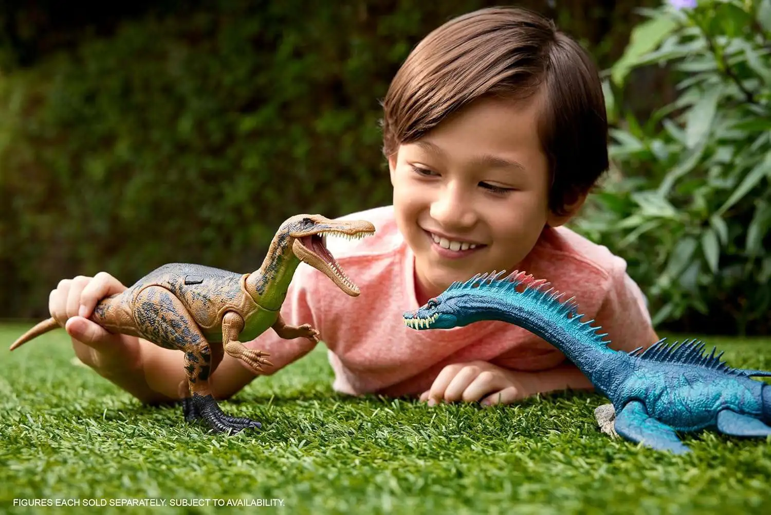 - Rampage attack! The intimidating look of the Suchomimus dinosaur figure from Jurassic World: Chaos Theory is brought to life with this Gigantic Tracker figure with vicious thrashing attack.