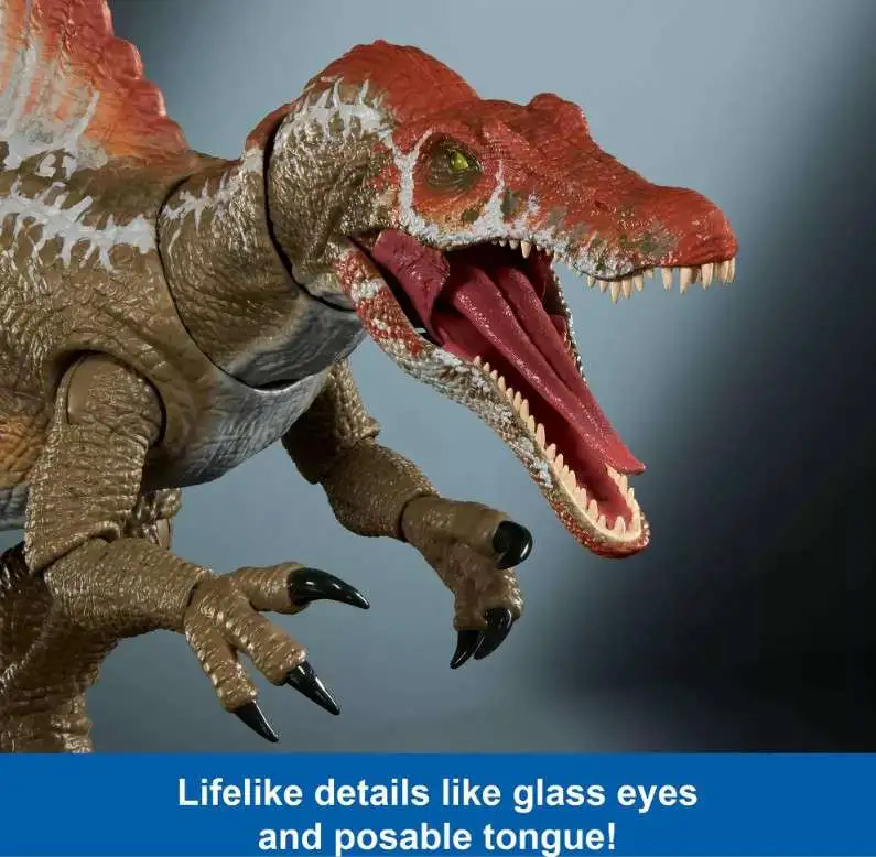- Largest carnivore in the line! The figure of this distinctive-looking species is more than 25 inches long and movie-accurate to Jurassic Park III. Deluxe details include glass eyes, posable tongue and a wired tail