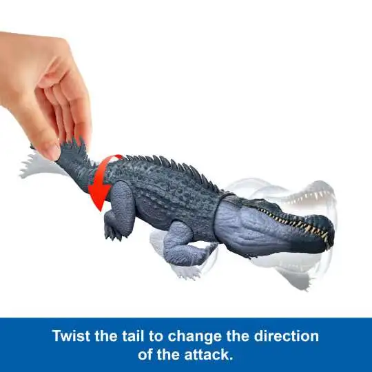 Move the Purussaurus' tail up and down for a vertical chomping action, then twist to either side for a ferocious thrash and chomp attack!