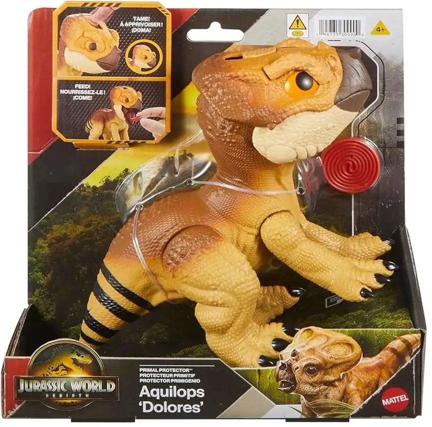 - Human-dinosaur interaction! This Jurassic World Rebirth Primal Protector Aquilops 'Dolores' is an electronic interactive dinosaur toy inspired by Isabella and her companion dinosaur in the movie.