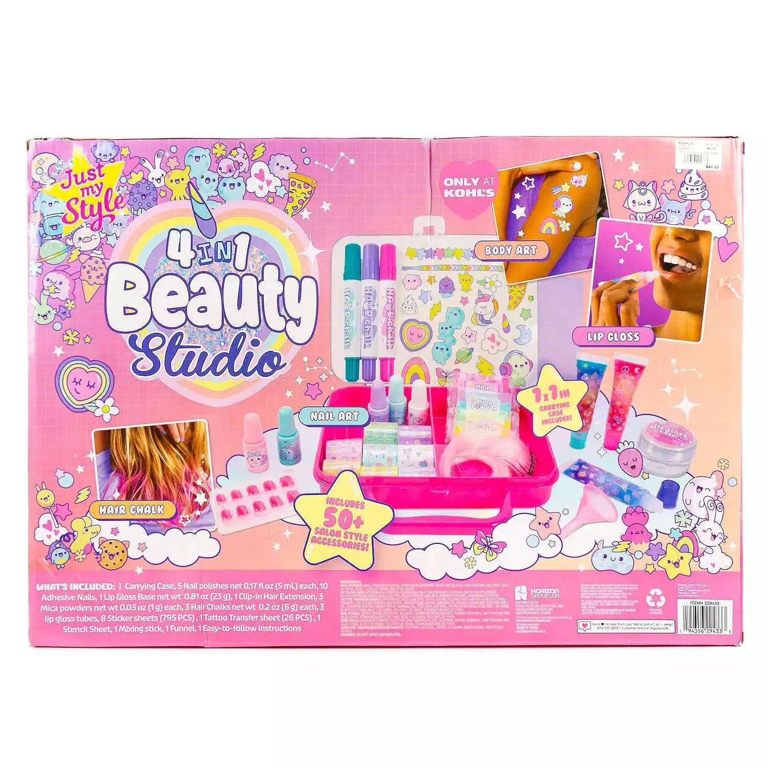 - This 4-in-1 beauty set includes all the essentials for body art, DIY lip gloss, colorful hair chalking, and trendy nail designs - all in one box!
