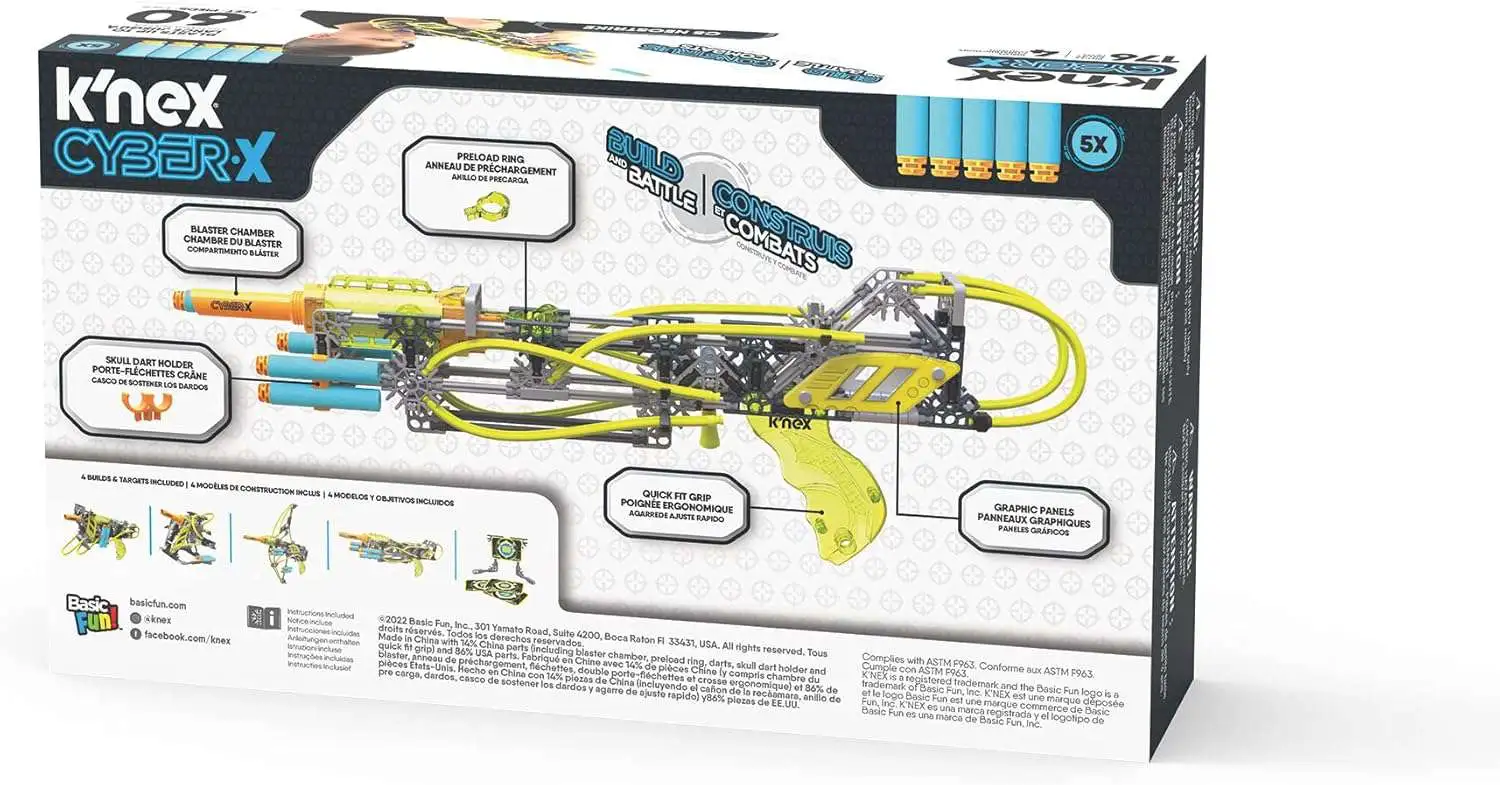 - BUILD, BATTLE, LEVEL UP! Enjoy non-stop excitement as you build your own dart blaster with the K'NEX CYBER-X C5 Neostrike! Choose from 4 available templates or create and design your own!
