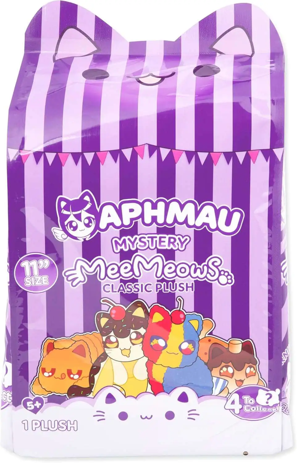 - EXCITING UNBOXING SURPRISE: Opening a MeeMeows mystery package is a super fun experience every time! Nestled inside each surprise package sits one of four possible 11" plush Aphmau toys - and you never know which one you'll get.