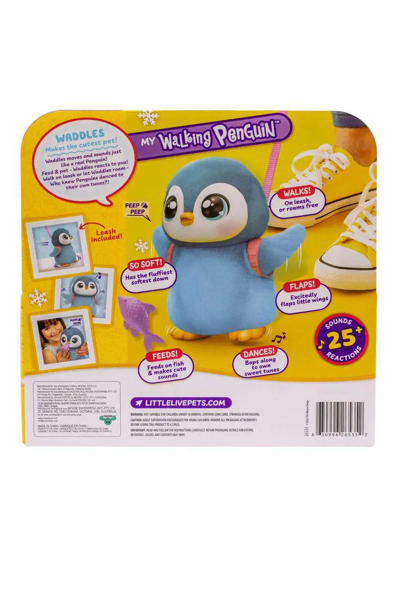 - Little Live Pets My Walking Penguin is the perfect addition to any toy collection, offering a unique blend of education and entertainment. Waddles provides a magical experience that encourages nurturing, play, and a burst of laughter. Ideal for children who love animals and interactive toys, Waddles the Penguin is sure to become a beloved companion in no time. Get ready to take a walk on the wild and wacky side with Waddles, your childs new best friend!