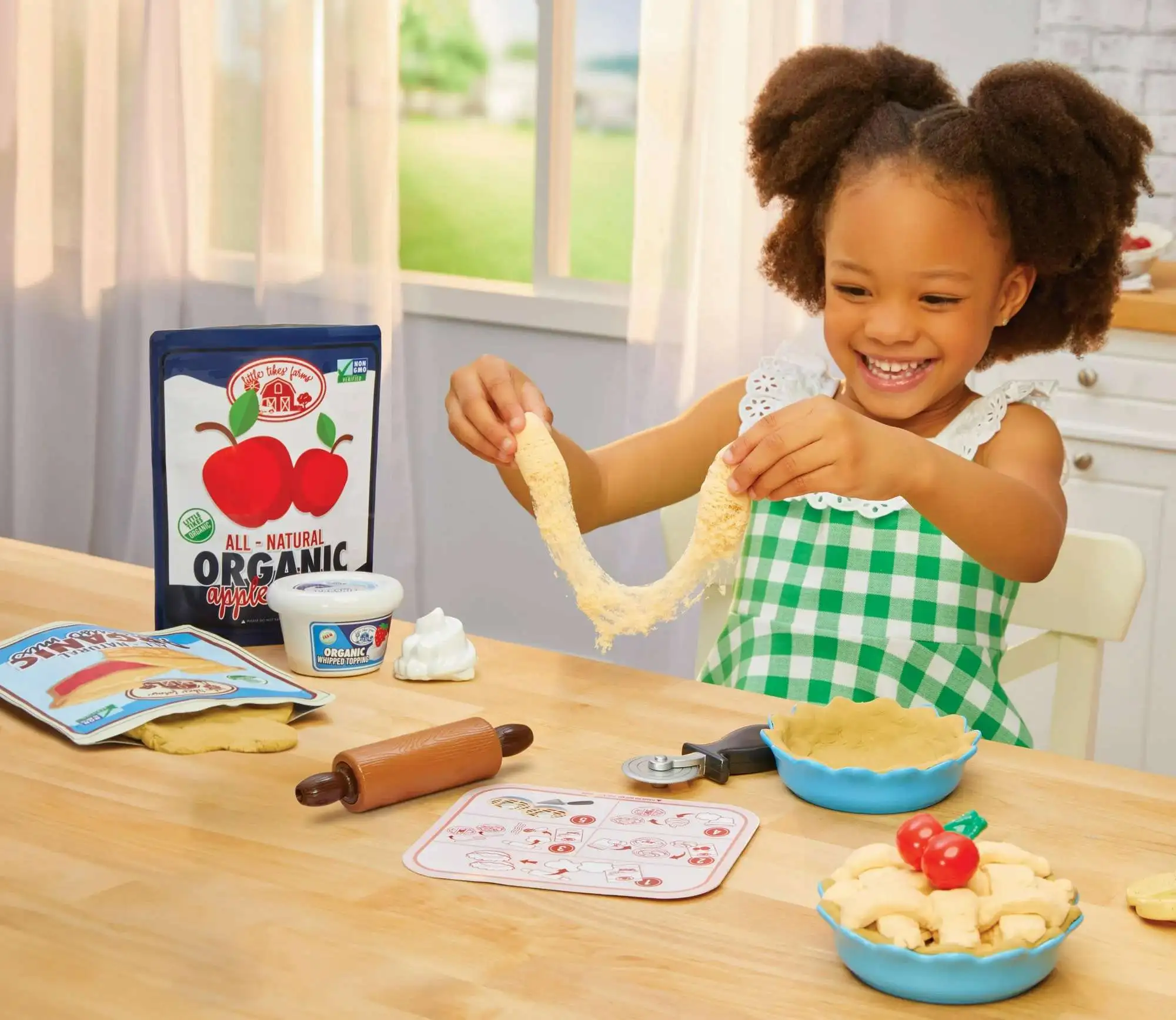 - AT-HOME BAKERY - Boys and girls will enjoy this realistic Pie Kit. With functional baking utensils and Make-It! Mix play sand, kids can open their imaginations as they explore the process of baking. This hyper-realistic set teaches kids the basics of baking pies, encouraging play to become practice and practice to become real.
