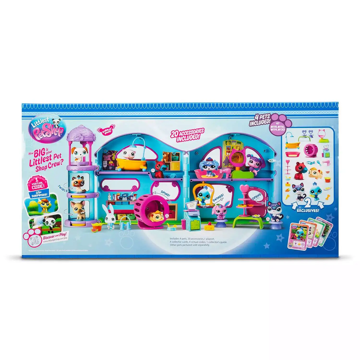 - The playset also features a tower with fun spinning platforms, adding an interactive element to your playtime. Bobble from room to room with your adorable new pets and embark on your own littlest adventure. The playset provides a variety of fun activities for your favorite pets to enjoy, allowing for endless hours of imaginative play.