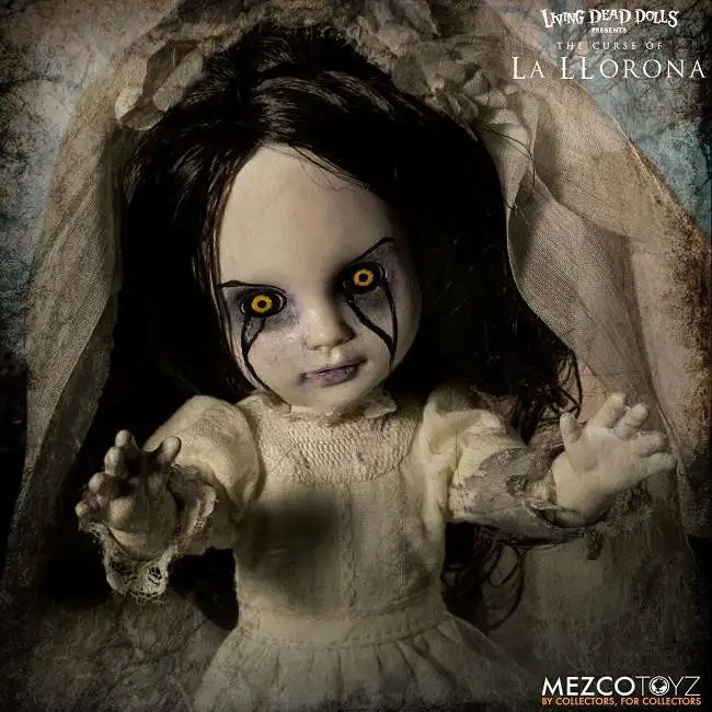 La Llorona joins the Living Dead Dolls family and wears her infamous white gown with black, curly hair peaking out from her veil. She cries black tears as she searches desperately for her children,