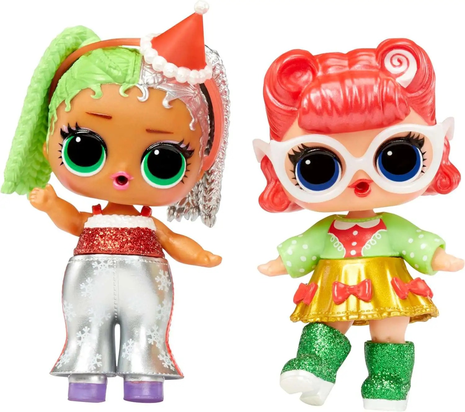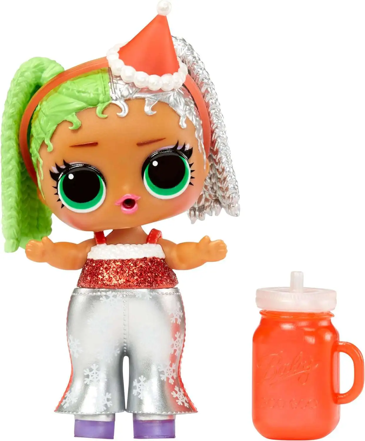 8 SURPRISES: Includes: (1) 1 Limited edition L.O.L. Surprise! Holiday Present Surprise doll; (2) Outfit; (3) Shoes; (4) Bottle; (5) Accessory; (6) Sticker; (7) Secret Message; (8) Ornament Ball