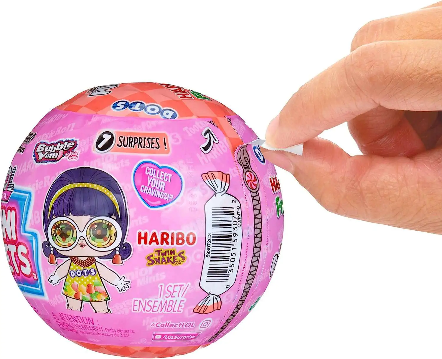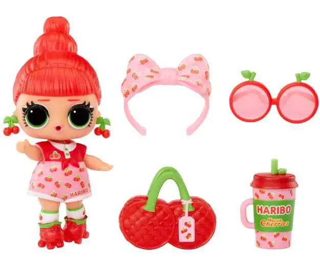 LOL Surprise has partnered with iconic brands such as Junior Mints, Tootsie, Tootsie Pop, Hersheys Bubble Yum, Dots, Haribo Goldbears, Haribo Frogs, Haribo Twin Snakes, and Haribo Happy Cherries to bring you dolls inspired by your favorite sweets! Each doll has a unique style thats tastier than ever to match each treat.