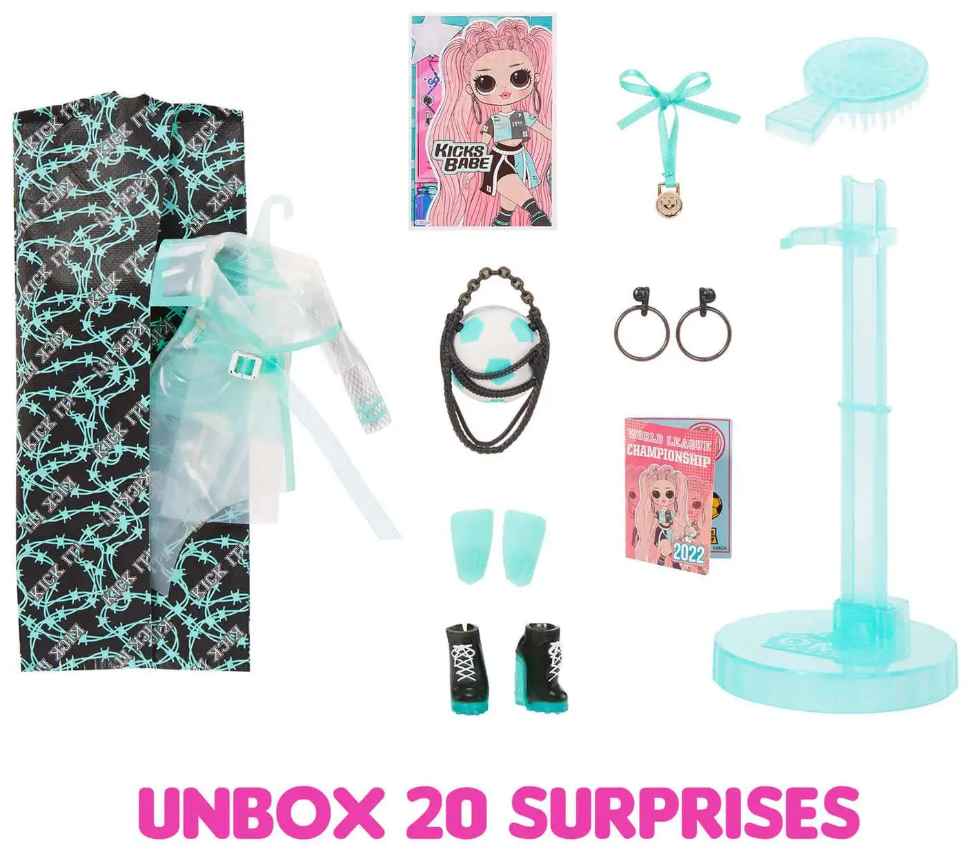 Introducing the all-new LOL Surprise OMG Sports fashion doll Kicks Babe with 20 surprises! We sisters are here to win, the competition is fierce but so are we. With the heart of a champion and the strength of a queen, we always surprise the world.