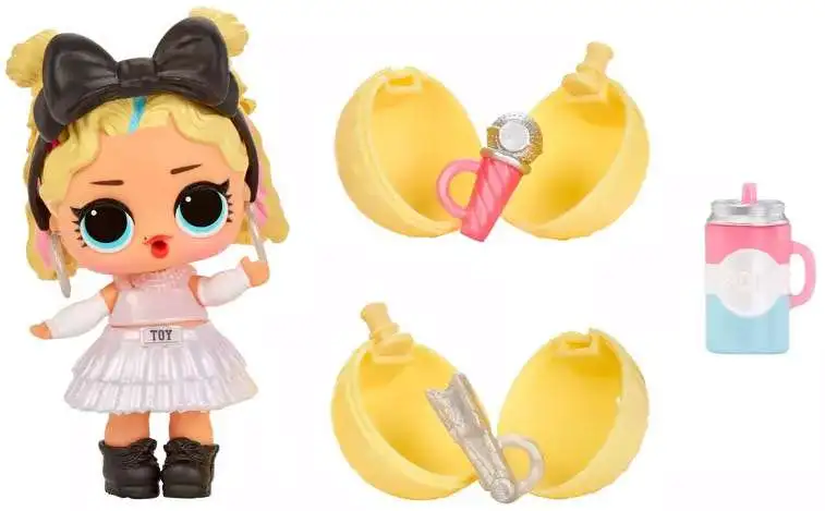 - 8 SURPRISES: (1) Sooo Mini! L.O.L. Surprise! Doll; (2) Outfit; (3) Shoes; (4) Bottle; (5) Accessory; (6) Charm; (7) Charm; (8) Mini LOL Ball Unboxing